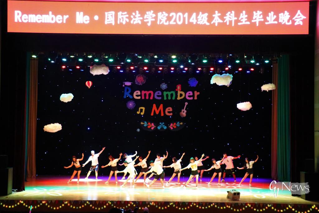 接下来,14级各班依次为观众们献上精彩纷呈的节目。每个节目开始前,都会播放一段本班同学的毕业纪念视频。视频里铭刻着同学们点点滴滴的回忆和对法大的不舍。1404班的同学们齐唱着《那些年》,在聚光灯下重演法大生活的一个个片段,再次体会当年的欢笑和泪水。1402班的歌舞表演《重返十七岁》,再一次勾起同学们对少年往昔的怀恋,为全体同学献上毕业的祝福。