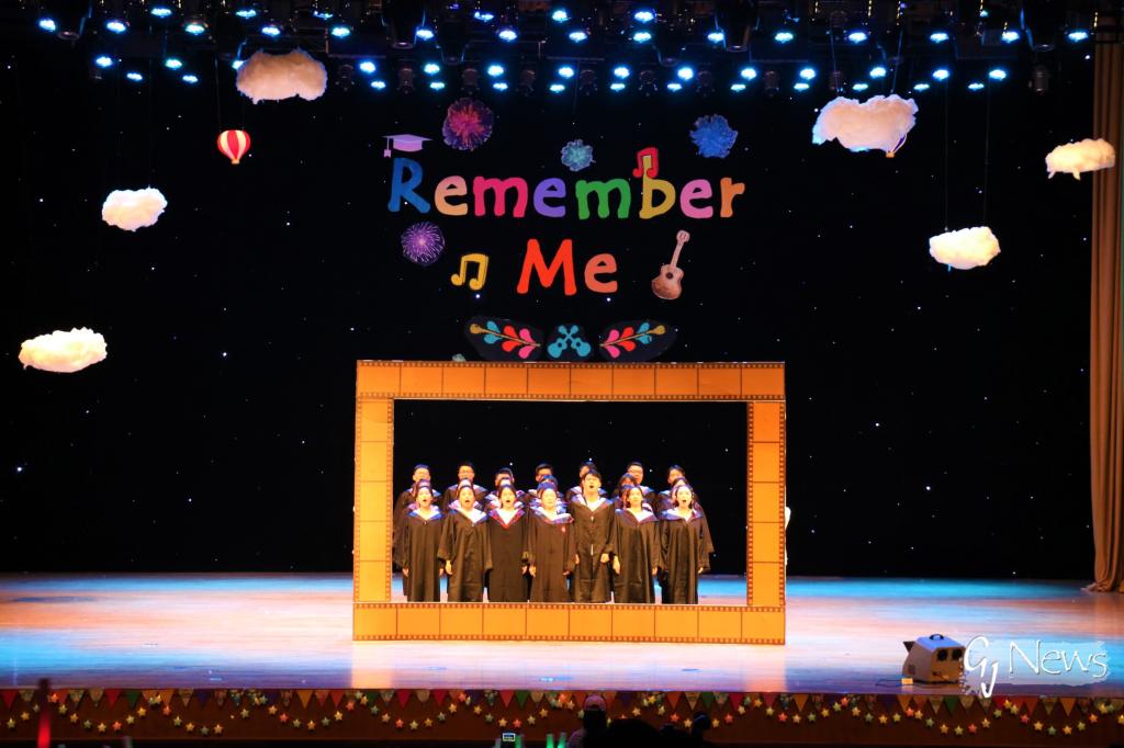 1407班同学们的表演令人眼前一亮。琵琶、二胡的合奏宁静悠远,如怨如慕,忽而灯光乍起,鼓点急奏,一群热情洋溢的舞者为观众献上奔放的草裙舞。光影交错间,完美诠释了《动·静》的主题。1403班的歌舞串烧《请回答1403》,舞曲激情飞扬又包含着别样的诙谐。巨大的相框下,同学们合影留念,传递了那一份毕业情怀。