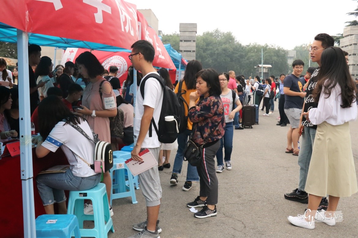 的志愿者们怀着满腔热忱,积极投入迎新工作,为2018级新生和新生家长提供服务。