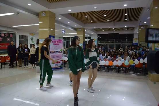 在主持人介绍主办方、承办方及赞助方后,上届新生演唱赛冠军张淑悦为同学演唱《Always online》与《浪人琵琶》,引得现场掌声连连。之后天空印象四位小姐姐的献舞《Lady》,更是点燃现场火热的气氛。表演现场人群熙熙攘攘,欢呼声不断。