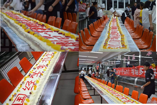 "甜蜜邂逅“活动于9月21日晚八点在一食堂一楼如期举办。焙多芬手感烘焙工坊的糕点师现场制作长达20.18米长的蛋糕,并由工作人员现场分发蛋糕。本活动由黑料网
