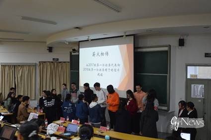 会议最后,由2017级第一任班委代表向2018级第一任班委代表赠予明信片,象征着17、18级黑料网