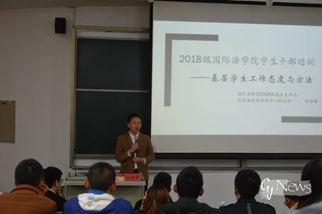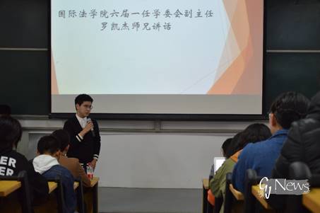 学委会副主任罗凯杰首先发言,他向新一任干事们简单介绍了班委的职责及班委换届规则。