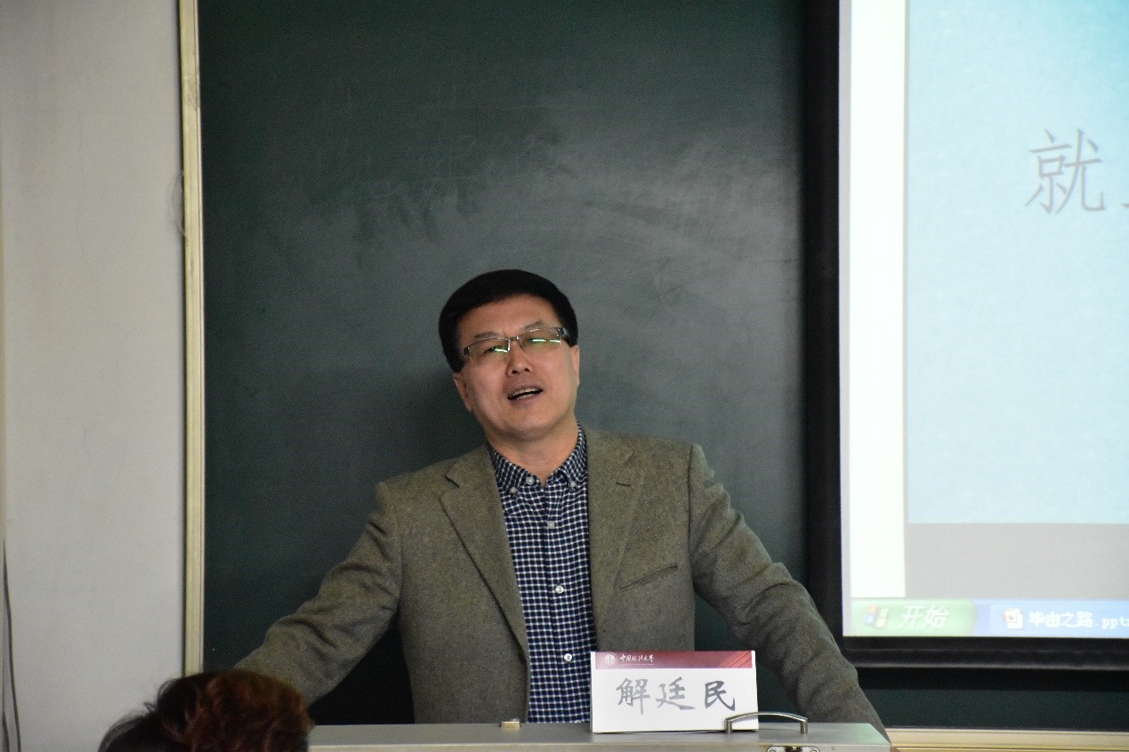 在本次讲座中,解老师主要从国家大学生就业政策及学校引导政策及毕业生的求职准备两个阶段来阐释就业形势,并根据就业形势及专业特色分析解答同学们提出的问题。在讲座伊始,解老师就开宗明义地强调了大学生就业宣传教育的必要性,认为宣传教育应当从入学时抓起,做到就业意识贯穿于研究生学习与生活的整个阶段。