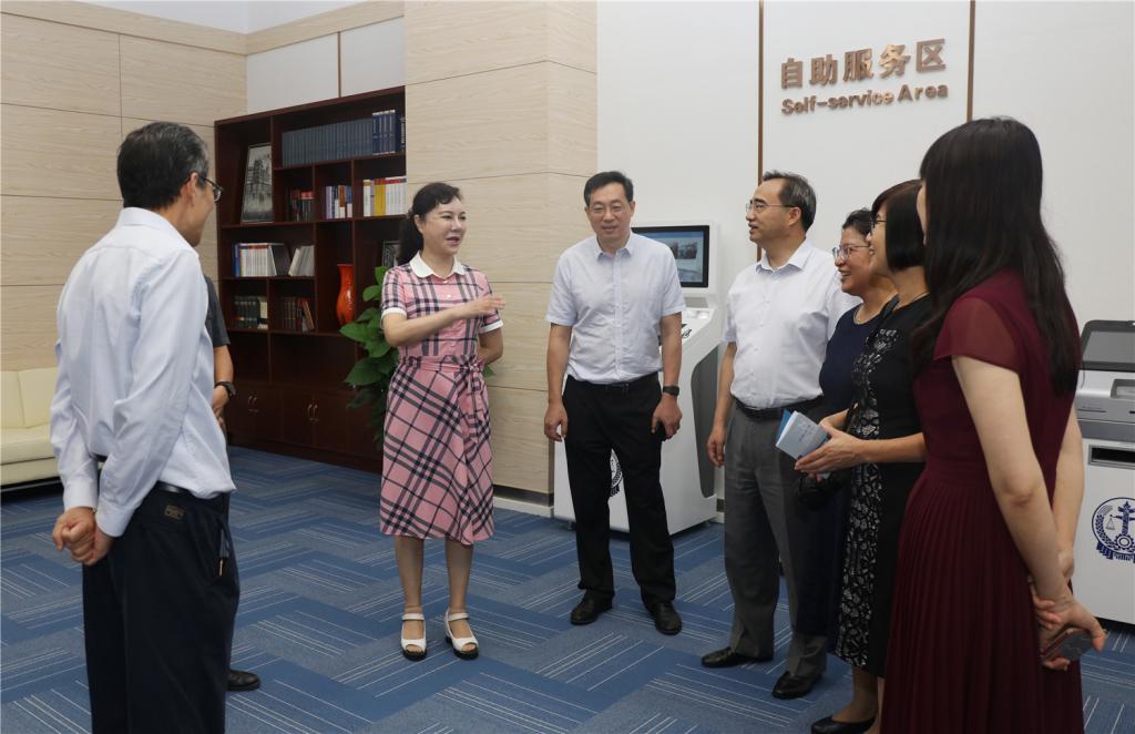 黄进会长一行参观了智能云柜系统、诉讼服务中心、大法庭、可视化大数据平台、法治文化长廊、心灵驿站、法官墙、家事法庭、廉政文化长廊、第一涉外民商事法庭等地。刘嘉副院长详细地介绍了海南一中院2017年开发的电子卷宗随案同步生成系统,其为网上诉讼、异地办案提供了条件,方便当事人,减少当事人的诉讼成本。在家事法庭黄进会长等人坐到了审判席上感受家事审判营造的温馨气氛。在第一涉外民商事法庭,黄进会长一行参观并亲自体验了在线调解平台功能,感受了科技对司法调解带来的便利。该涉外民商事纠纷多元化解平台(ODR)是海南一中院首创,其充分发挥社会机构作用,与海南省贸促会、国内外调解机构、国际仲裁机构等建立合作关系,实现诉讼与调解、仲裁的对接,为涉外民商事案件提供全程在线、高效调解的多元化纠纷解决渠道。