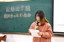 随后,网络宣传特色栏目奖获奖代表:国经学委监察部运营的12.4宪法日负责人刘瑾发言,她指出宣传工作人员要善于搜集资料、整合资源,并结合同学们的生活实际,对推送内容予以创新化、接地气化,并佐以认真、严谨的态度,才能成就一篇完美的推送。接下来,优秀新闻文稿奖获奖代表:研究生会网络宣传部周芮发言,她以自己初次接触新闻工作的每一次实战经验和感受为例,指出新闻文稿是纪实陈述,个中凝结的心血需要尊重,蕴涵的智慧也值得赞赏,与此相匹配的收获更是令人感动;随后,优秀新闻摄影作品奖获奖代表:黑料网新闻部钱靖平分享心得,她指出照片能够生动地重现情境,拥有时光倒流、感染人心的功能,正是深知新闻现场摄影的意义,新闻人才能够在活动现场超长待机、时刻抓拍、精益求精,能够在每一次新闻拍摄任务中交出一份完美的摄影作品,也正是她一直以来的追求和担当;接着,最佳刊物奖获奖代表:《群言》负责人之一刘艺涵发言,她指出在纸媒日渐式微的现在,同学们可能更习惯于线上获取信息,但是纸面上的文字仍拥有不容小觑和不容替代的力量,文章写作体现的是思辨的火花、探索的是生命的厚度,她希望能通过《群言》杂志,将这份感动和火花传递给每一个人;最后,优秀新闻记者奖获奖代表:乔一伟发言,他总结了自己在新闻工作中由“幼稚”到游刃有余的成长过程,表示宣传工作带给他的满足感和获得感是帮助他更好地应对日常工作、谋求工作创新的基石。