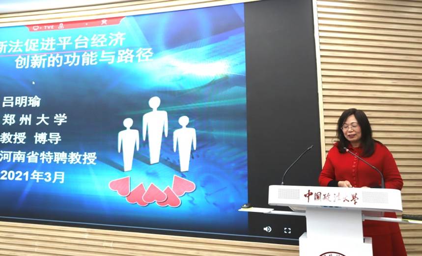 郑州大学法学院吕明瑜教授以“反垄断法促进平台经济创新的功能与路径”为题进行发言。吕明瑜教授围绕三个问题展开,即创新与竞争的关系是什么?对于平台创新,反垄断法具备哪些功能?反垄断法如何促进创新?吕明瑜教授认为创新和竞争二者之间存在深度的依赖和融合,相互促进,相辅相成。反垄断法可以借助其保护竞争的特点为创新施以压力,推动平台创新。反垄断法要促进创新,一是从反垄断法修改中增加相应的制度入手;二是增加数据垄断的控制制度,充分考虑创新因素。