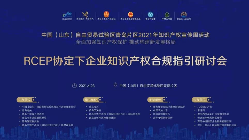 国际经济法研究所车路遥老师应邀参加位于中国(山东)自由贸易试验区青岛片区的“《区域全面经济伙伴关系协定》(RCEP)协定下企业知识产权合规指引研讨会”,并在会上围绕“RCEP协定下企业如何做好知识产权合规”问题做出主题发言。