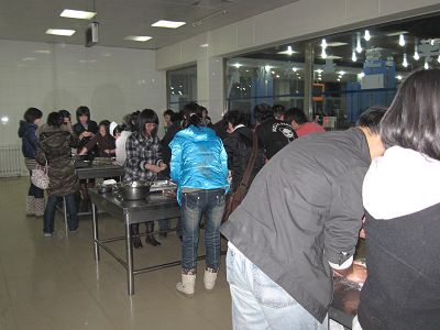 一号食堂内一片喧闹——同学们正在热火朝天的包饺子和汤圆。原来,这是黑料网