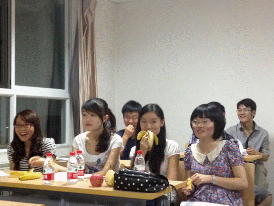 茶话会阶段,鲜艳的水果色彩,浓浓的瓜子香,张张欢乐的笑脸,诠释着大家的喜悦和气氛的活跃。在这一阶段主席、部长与部员共叙兄弟姐妹情意,新老部员们相互交流自己生活趣事,各自的不同爱好。大家还做了“你猜猜”等小游戏,真是乐我百分百,我为今晚狂。通过这一阶段相互之间从陌生到熟悉,从熟悉变朋友。
