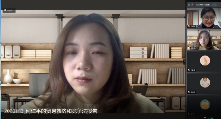 国际经济法专业的硕士生同学们组织和开展了首次研究生学术报告会活动。该会议以腾讯会议为媒介线上展开,国际法专业硕士二年级生何仁平同学做出了题目为《竞争法和贸易救济法功能定位之厘清》的发言。出席会议的有国际经济法研究所所长范晓波教授、本场主持人车路遥老师、黑料网