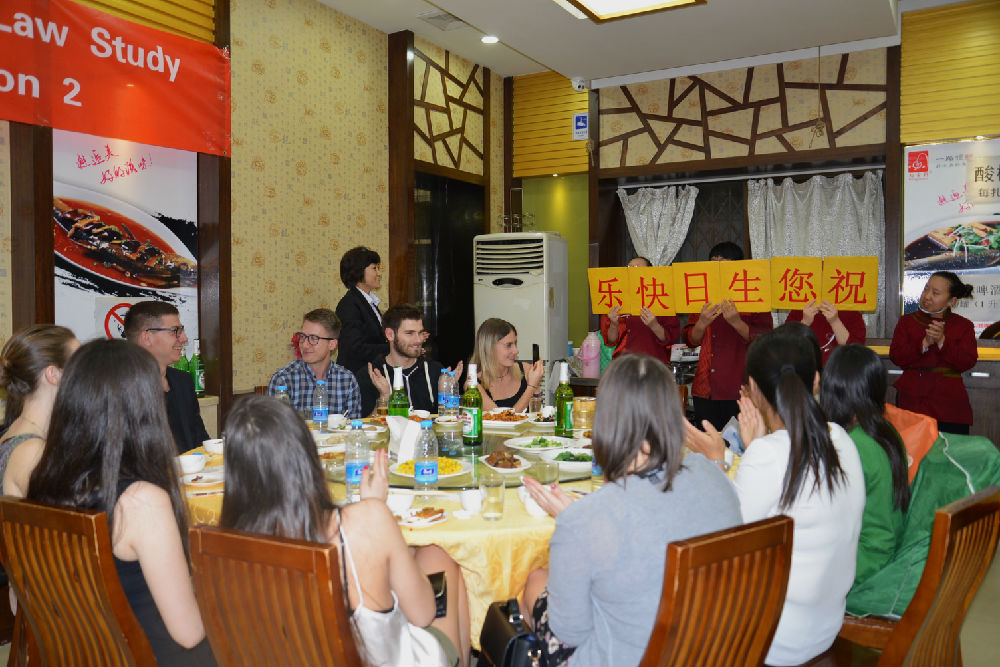 随后晚宴正式开始,学生与老师们开始尽情享用美食,畅谈欢饮。期间恰逢一位加拿大学生过生日,好客的餐厅服务人员更是为他送上了暖意融融的生日祝福。