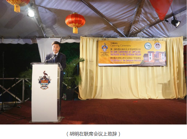 在访问巴巴多斯期间,代表团应邀参加了“第一届加勒比地区孔子学院联席会议”、第三届西印度大学凯夫希尔分校孔子学院理事会会议、中国—加勒比法律研究中心签约仪式、两校出版合作签约仪式、两校模拟法庭友谊赛开幕式、孔子学院大楼启用仪式、孔子学院课堂观摩等系列活动。胡明分别在联席会议开幕式、闭幕式、理事会及签约仪式上致辞。