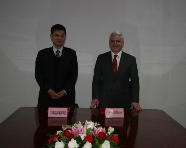 孔院长首先对Meyer院长一行的到来表示热烈欢迎。之后,参加会谈的老师就暑期项目的细节问题进一步交流了看法,表达了对明年成功举办首次暑期项目的信心。随后双方就学生交换、教师交流以及联合召开国际会议的有关细节做了初步沟通,取得了高度一致,相关合作有望在明年启动。下午四点三十分,两院院长正式签署暑期合作协议,会议在融洽的气氛中结束。
