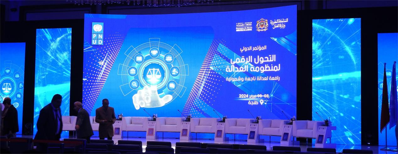 应摩洛哥司法部邀请,中国司法部国际合作局委派,刘力教授和华东政法大学涉外法治学院但伟教授参加了2024年2月8-9日在摩洛哥丹吉尔举办的“司法系统数字化转型:高效包容司法的催化剂”国际会议,该会议由联合国开发计划署和摩洛哥司法部共同举办。40个国家共400余人参加了本次会议。