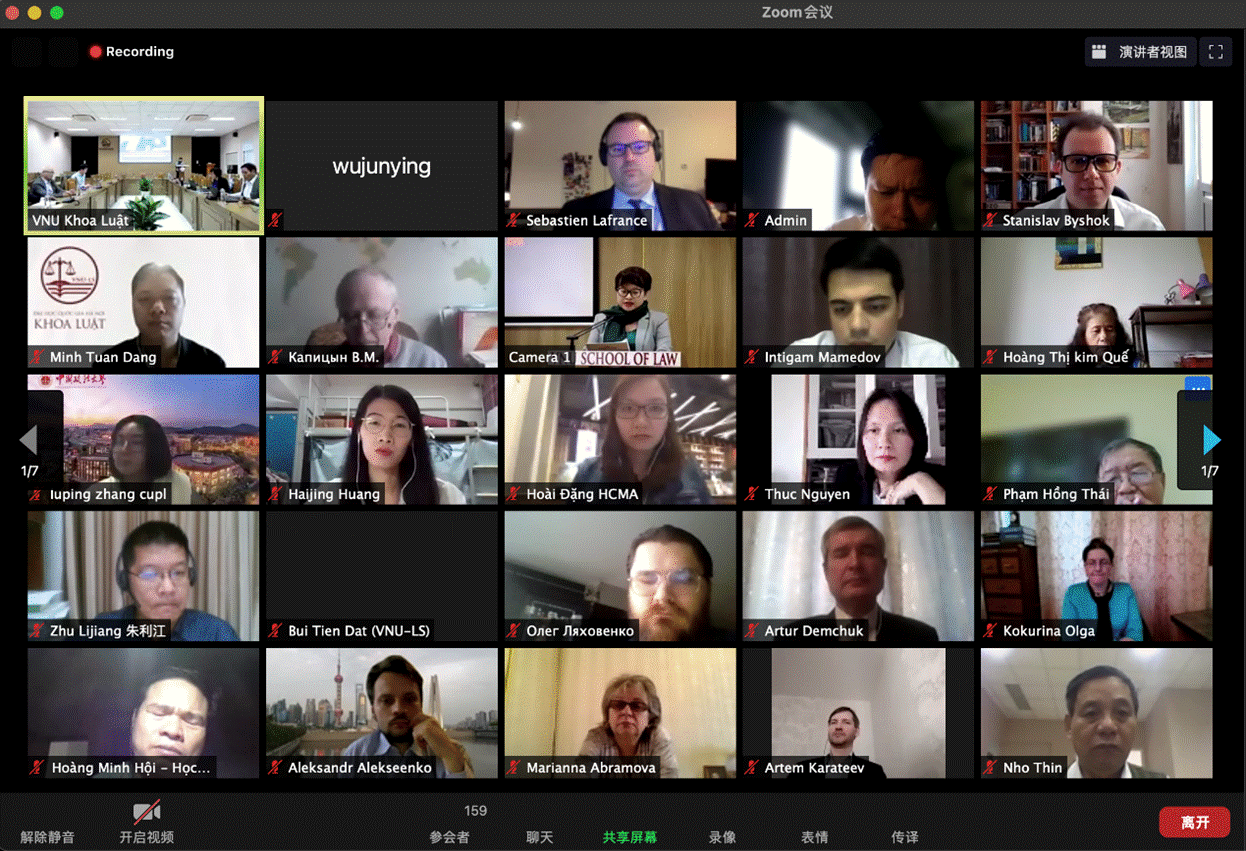 副院长朱利江、国际经济法教授张丽英、副教授丁如、青年教师车路遥博士、张鹿苹博士、及在读博士研究生伍俊颖、段佳葆、徐瀚冬参加了“中国、俄罗斯、越南政治和法律的传统与现代化”(Traditions and Modernisation in the Politics and Law of Russia, China and Vietnam)国际会议。本次会议于线上举行,由黑料网