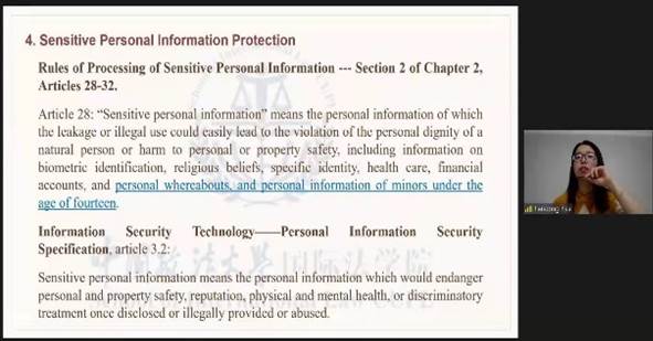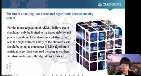 在车路遥老师主持的“数字化与法治”(Digitalisation and the Rule of Law)分论坛中,在读博士研究生徐瀚冬报告的主题是“《中华人民共和国个人信息保护法》的创新与争议”(Innovations and Controversies in Personal Information Protection Law of the People’s Republic of China);伍俊颖报告的主题是“中国法律自动算法决策系统的法律风险”(Legal risks of automated algorithmic decision making system on Chinese Law)。