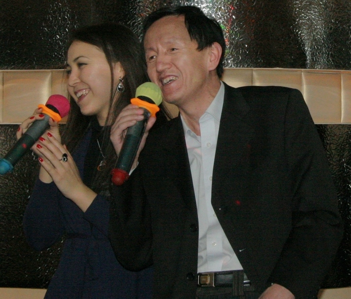 在联欢活动中,师生进行了交流互动,老师和同学们一同放声歌唱、尽情舞蹈,为严寒的冬日增添了一股股暖流,让身在异国的留学生们感受到了家庭般的温暖和师长们的关爱。宣增益教授与哈萨克斯坦留学生阿谢玛同学领唱《北京欢迎你》,师生随着乐曲共舞将整个活动推向了最高潮。