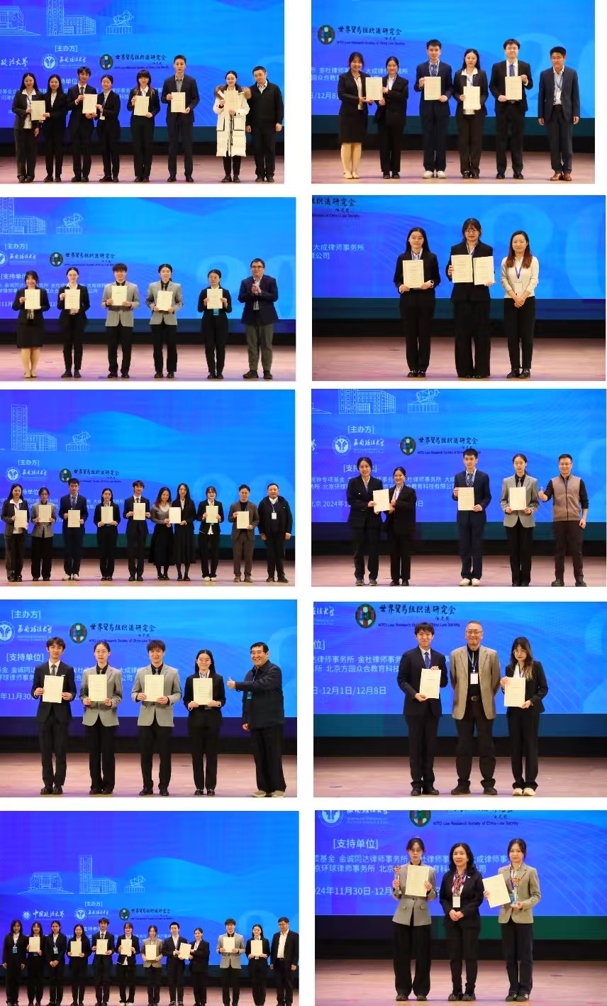 党委书记姜泽廷共同为冠军队伍颁奖。来自商务部、中国法学会世界贸易组织法研究会、中国法学会交流基金会及各支持单位、高校代表也出席了颁奖典礼,并为获奖队伍及选手颁奖,凸显了中央和国家有关部门及学界和实务界对赛事意义的重视,对赛题含金量的认可,对赛队辛苦付出的肯定。