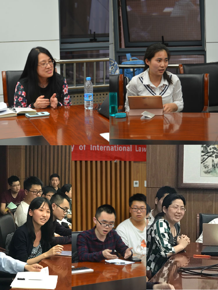 兰花教授就有关气候变化问题与《联合国宪章》第51条中的自卫权问题向Jacques Delisle教授提问,在环境问题方面,兰花教授的关注点主要在于美国总统特朗普在全球关于环境问题的规则制定方面所起的作用以及影响相关规则制定的因素。Jacques Delisle教授认为,在特朗普政府之下,美国或许会像退出TPP一样退出《巴黎协定》,即使美国不会退出,那么美国在全球环境问题的规则制定方面所起的作用也会相对较小。美国政府的有关决策是相关利益集团博弈的结果,因此美国相关规则的制定也是一个极为复杂的过程。同时教授还就美国总统在美国签订有关国际条约时的作用进行了简要的介绍。然后Jacques Delisle教授就《联合国宪章》第51条的解释发表了自己的看法。同时与会同学还就其他问题向教授提问,主要包括朝鲜核问题、韩国部署萨德反导系统的原因以及合法性、美国政府的有关投资政策和移民政策问题以及中美贸易关系的问题、在台湾问题上的“一个中国原则”等问题发表了自己的看法。