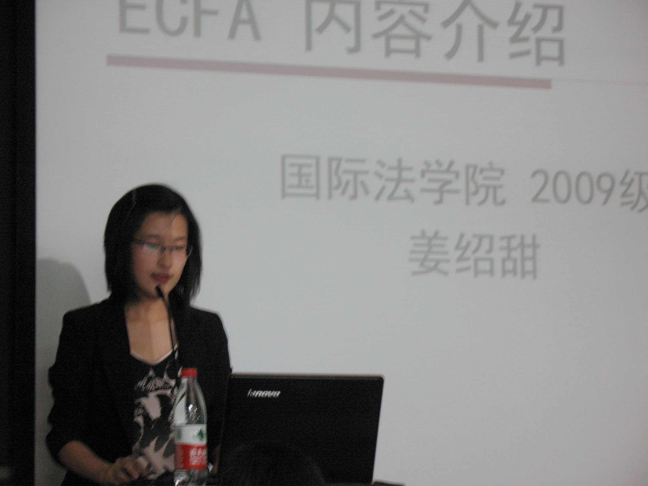 09级硕士姜绍甜同学、鲁洋同学以及10级硕士孔亚祺同学担任报告人。三位同学分三个部分就ECFA相关问题做了报告: