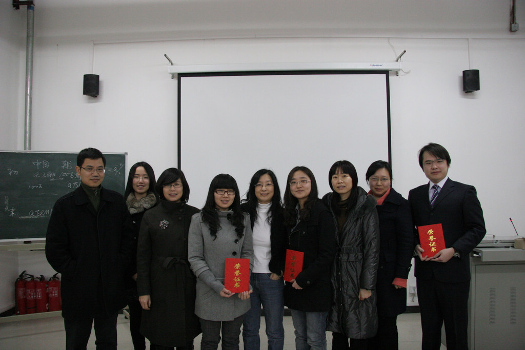 随后,各位老师和学生就人民币汇率问题、“北京回合”可能讨论的新议题等问题进行了深入讨论和畅想。 最后,孔庆江教授向主讲同学颁发“学术之星”荣誉证书、合影 |