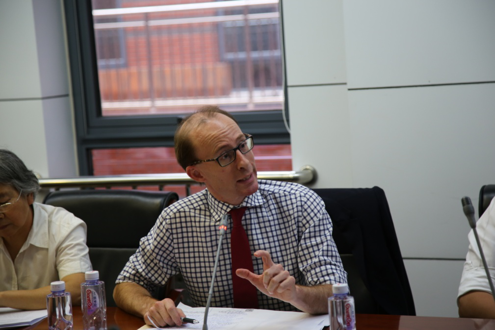 Harriet Moynihan研究员主持了第一节的讨论:“商业和人权的发展:特别提及一带一路的倡议”,日内瓦高级国际研究院教授Andrew Clapham、新加坡管理大学教授Henry Gao、中国纺织工业联合会首席研究员梁晓辉分别围绕“商业和人权最新情况”、“贸易条约中环境和劳动条款的演变方法”以及“中国的海外投资和人权保护”三个主题进行了发言。随后,全体参会人员围绕三位发言人的主题进行了深入地讨论,涉及了通用数据保护条例(SDG)、法人在战争罪和危害人类罪中的责任形式等热点问题。