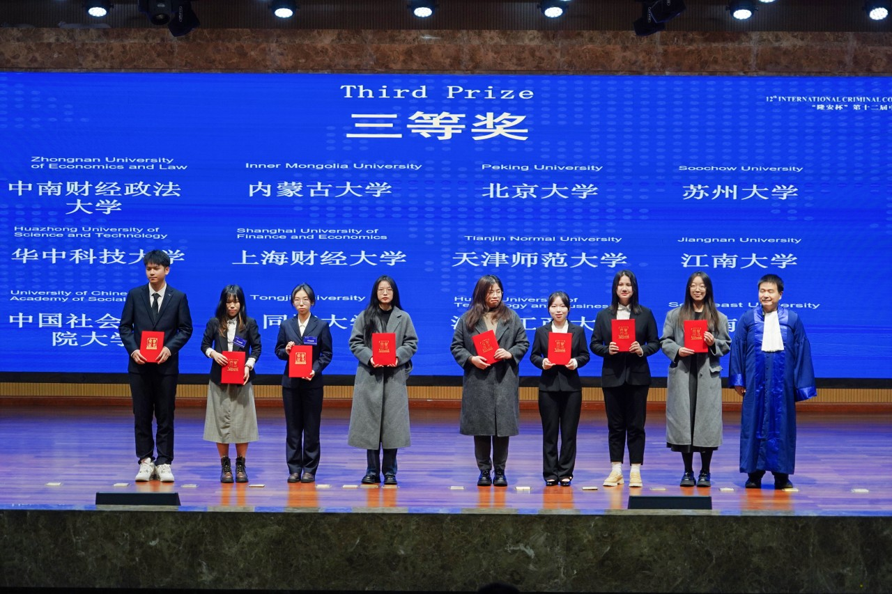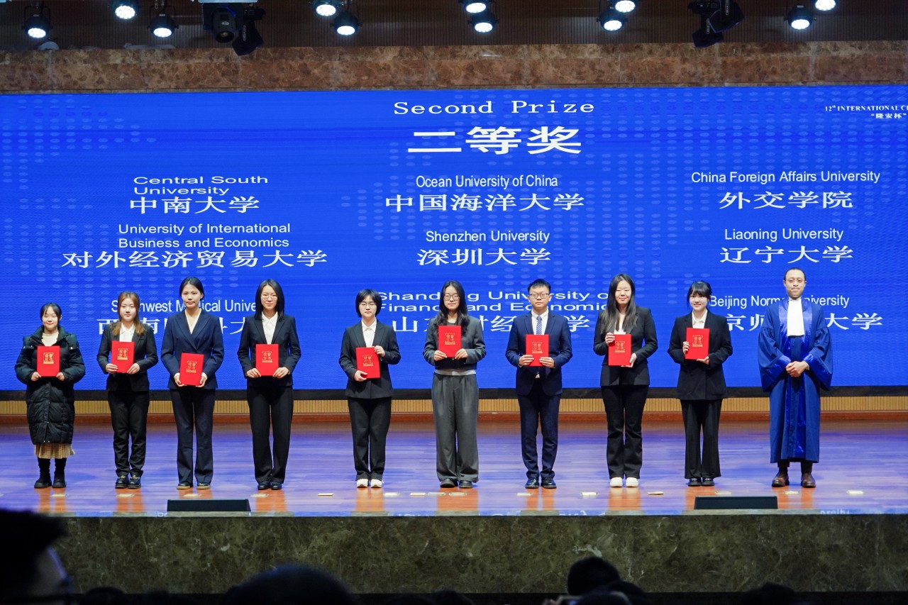 2025年3月7日至9日,由黑料网 和西南医科大学共同组织、北京市隆安律师事务所、西南医科大学司法鉴定中心、四川亨正律师事务所协作举办的“隆安杯”第十二届中国高校国际刑事法院模拟法庭竞赛(英文)在位于四川省泸州的西南医科大学城北校区举行。最终,上海对外经贸大学代表队获得本届比赛冠军武汉大学代表队和宁波大学代表队分别获得亚军和季军。此外,上海对外经贸大学、武汉大学、宁波大学、西南政法大学、复旦大学5所高校代表队获得了前往荷兰海牙参加国际赛的资格