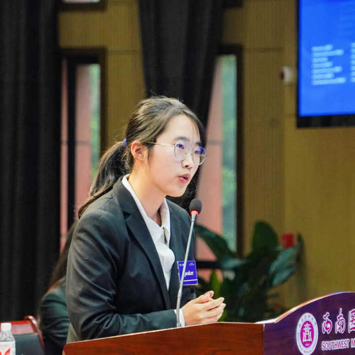 (西南政法大学郭金晶作为赛队队员代表发言)